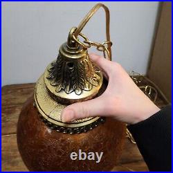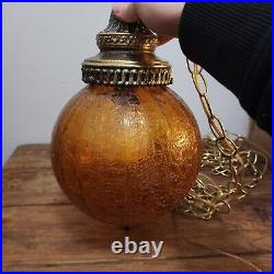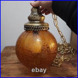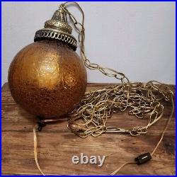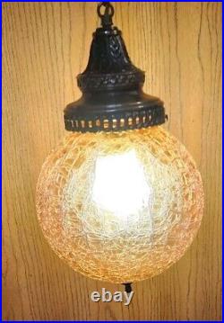 1960's-70's MCM Amber Crackle Glass Hanging Swag Lamp/Light