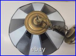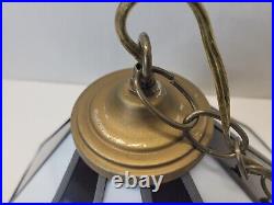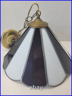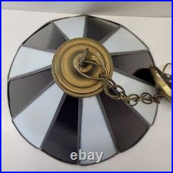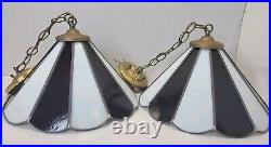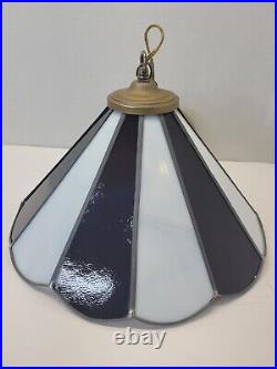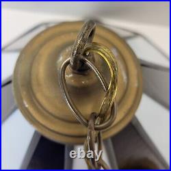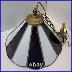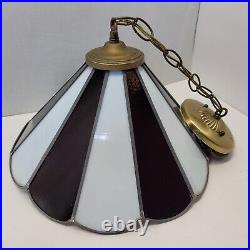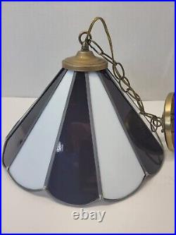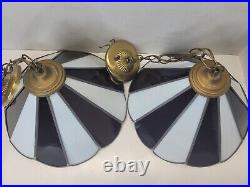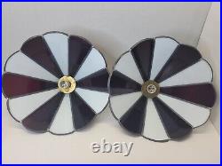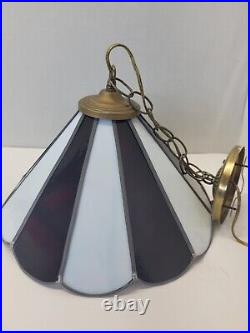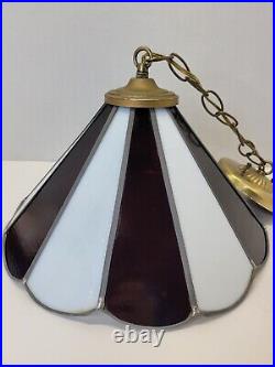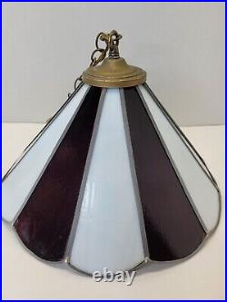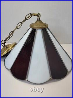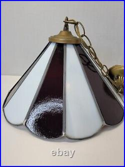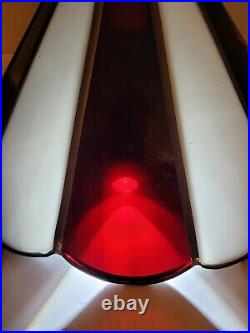 2 Vtg Tiffany Style Stain Slag Glass Hanging Ceiling Light Fixture Pub Red White