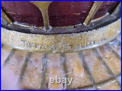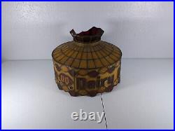 Good condition, top of the light has broken off (see photos). The stain glass is starting to peel in places (see photos). Thank you for viewing our listing! Please reach out to us with item specific questions.