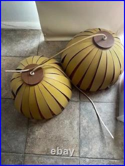 Mid Century Modern, Vintage Fiesta Double Pendent Light by Sven Aage /Holm Sorensen, Very Rare, s elling both of them, they are in good condition. One on the left has a few bent pieces.