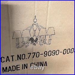 It has a hardwired power source and is controlled by a switch. The chandelier has a hanging mounting style and emits a black light. This piece falls under the "Chandeliers & Ceiling Fixtures" category and is suitable for unisex adults looking to add a vintage touch to their living space.