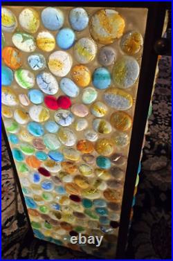 It is very pretty to display. It can be hung or stand on a table. It gives a beautiful glowing effect. Because of it's age I would rewire the light with the newer plugs. This was from my mother's collection and she had it for many years. I believe she bought it when she was in the Catskill, NY Mountains.
