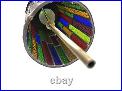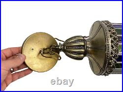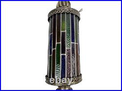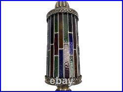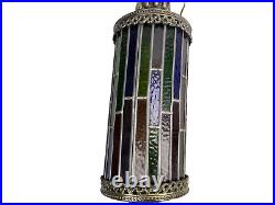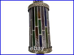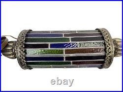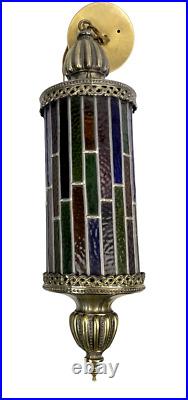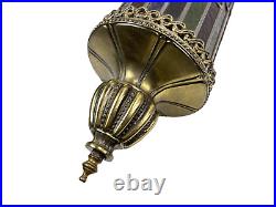 Description: Vintage Hollywood Regency hanging swag stained glass light. Condition: Nice used condition, see pics.