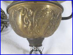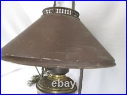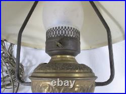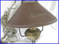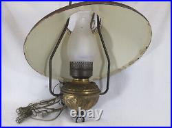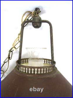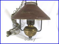This is a hanging, hurricane style lamp. The shade is metal and measures 16 1/2 inches in diameter. The height measures 24 inches tall overall. The chain is about 8 feet long.