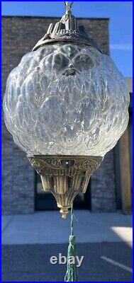 Add a touch of vintage charm to your space with this beautiful MCM Hanging Swag Lamp. The lamp features a stunning globe-shaped shade made of high-quality glass, which adds a unique elegance to any room. It is designed to be hung in a perfect spot to create a cozy and inviting atmosphere. This Swag Lamp is perfect for those who love Mid-Century Modernism style and want to add a vintage touch to their decor. It comes with a light sensor type that ensures the lamp automatically turns on when the room gets dark.