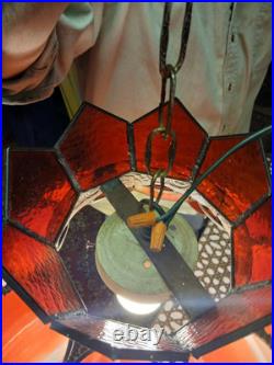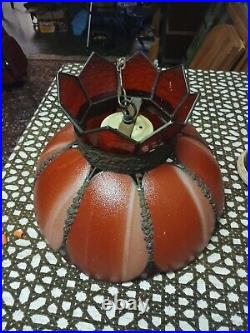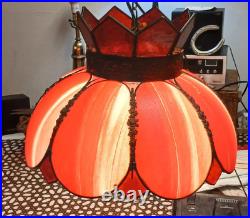 Vintage Red Slag Glass Hanging Tulip Lamp