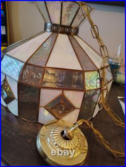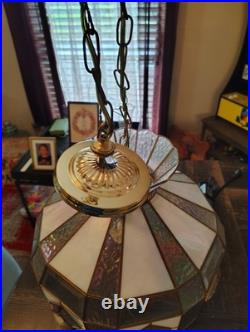 Beautiful Tiffany Style hanging light, hard wire, great shape no cracks or chips.