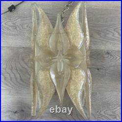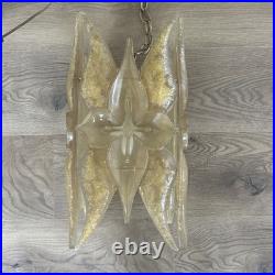 Vtg MCM Hanging Light Gold Lucite Resin Lamp 15 Funky Retro Abstract Swag