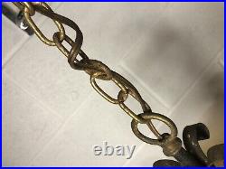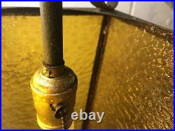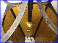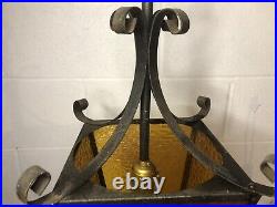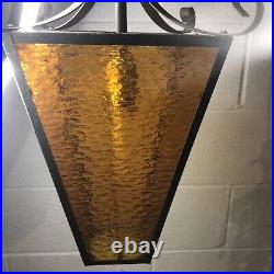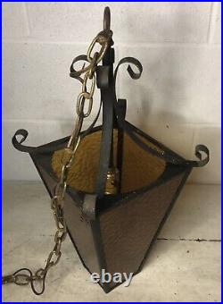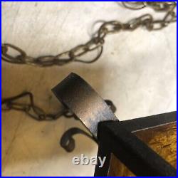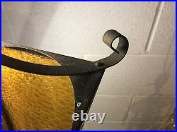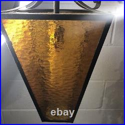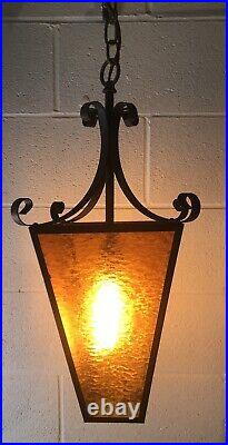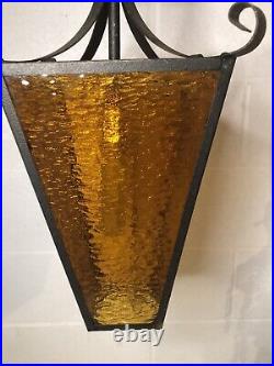 VTG MCM Retro Orange Glass Metal Wrought Iron Look Hanging Pendant Lamp Light