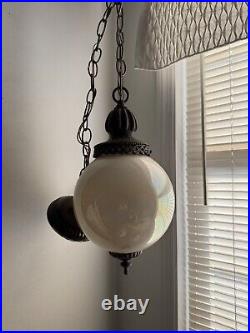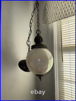Add a touch of vintage charm to your indoor space with this unique hanging pendant lamp light. The orb sphere design features a pearl color, adding a retro ambiance to any room.