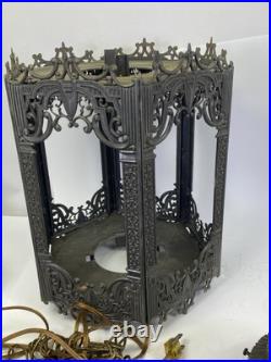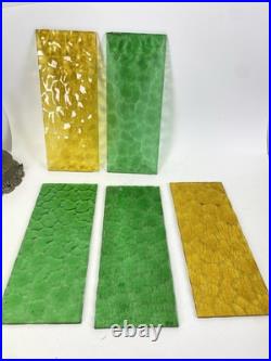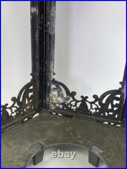 Roughly 23 inches tall with both top and bottom piece attached. Only 5 glass panels are included not 6. Panels included have chips on the edges but should be covered by the frame of the slots when installed. Will need cleaned by new owner.