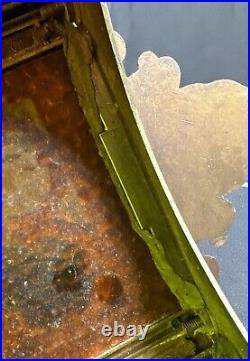 VTG MID CENTURY MCM GLASS METAL 6 PANEL LARGE HEAVY HANGING SWAG LIGHT 21H? This is a large, heavy fixture. No damage to the panes. Edges may be rough but nothing noticeable when installed. Could use a better cleaning, polish. Chain does have areas with rust. This could be replaced or cleaned. Cord appears to be in good condition. Pull chain also has areas or light rust. Light will be well packaged. Light has a putty around the glass top/bottom that is mostly gone. I'm assuming this is to help seal. Most of it will mostly be removed after taking the panes out.