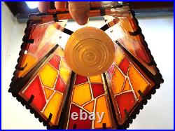 Lamp is in good vintage condition with a few markings consistent with normal use. One panel shows warpage as shown. Lamp measures approx 9" in diameter, 18" tall from finial to bottom of fixture and a 14' cord with chain. In cord roll type on/off switch.Plugs into a standard electrical outlet. Nice example of Mid Century Modern lighting design. Feel free to ask any questions or request additional pictures.