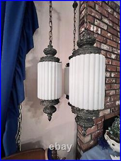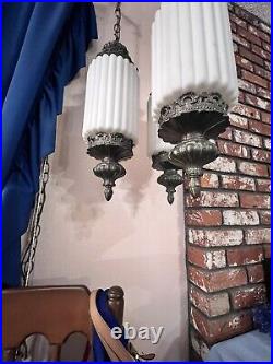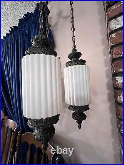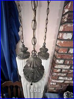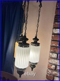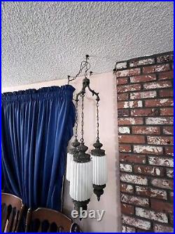 Very long chain and power cord to fit your needs. Please see photos for accurate item condition. From top to bottom of shade holder is around 16.