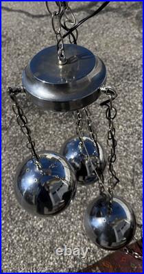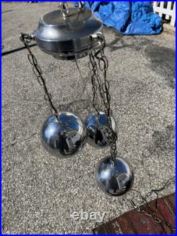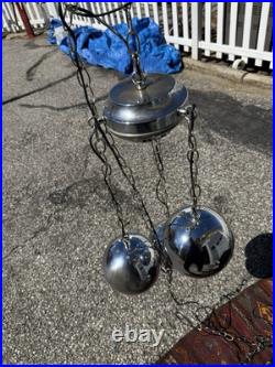 Vtg MID Century Space Age Modern Atomic Chrome 3 Light Eyeball Chandelier Lamp