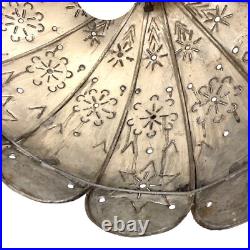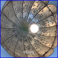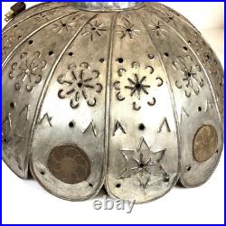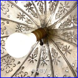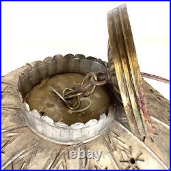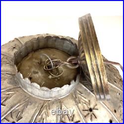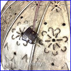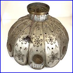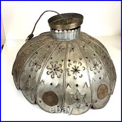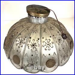 Vtg Punched Tin Primitive Folk Art Hanging Lamp Light Swag Metal Brass WORKS