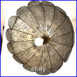 Vtg Punched Tin Primitive Folk Art Hanging Lamp Light Swag Metal Brass WORKS!! Shows some minor wear but overall good condition. Measures approximately 18 inches in diameter and hangs down approximately 17 inches from the ceiling. Full 30 day moneyback guarantee if item is misrepresented in any way.