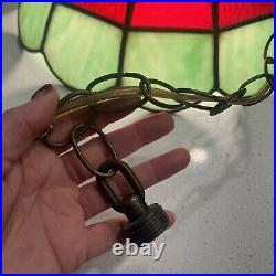 Vtg Tiffany Style Stained Glass Pendant Lamp Ceiling Fixture Hanging Light 15 W
