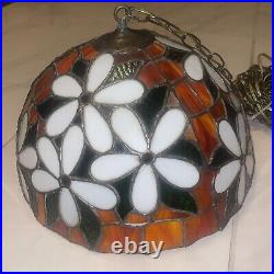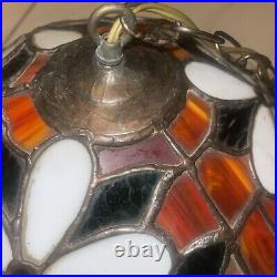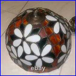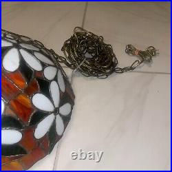 Vtg Tiffany Style Stained Glass Pendant Lamp Ceiling Fixture Hanging Light 16