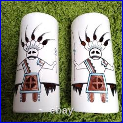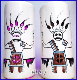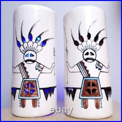 VTG Yankee Doodle Dandy Kachina Matching Signed Hand Painted Ceramic Swag Lamps